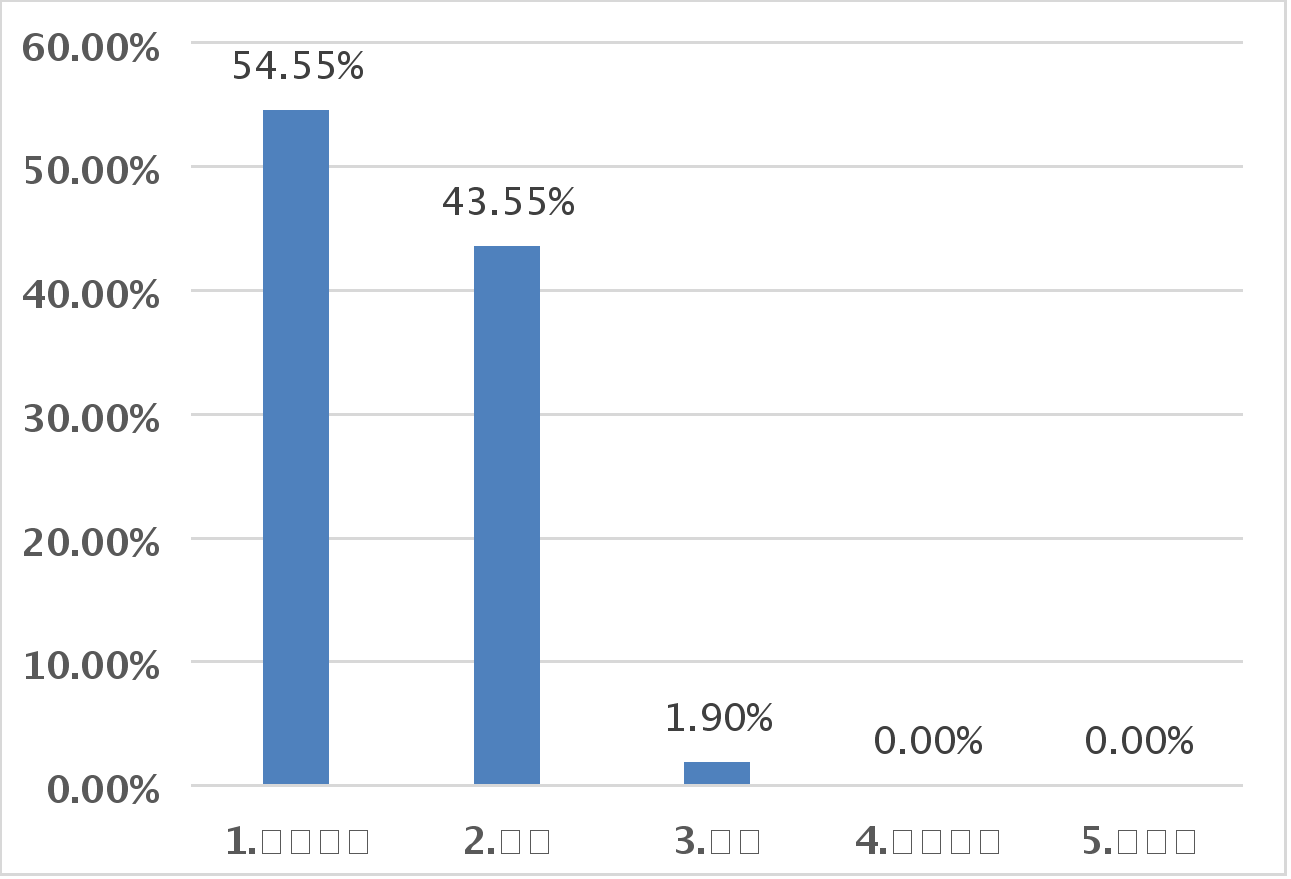 在参与调查问卷的19名就业毕业生中,毕业生对用人单位的整体满意度较高,特别是对工作的安全性、工作地点满意度和工作氛围比例较高。详见表2.1。