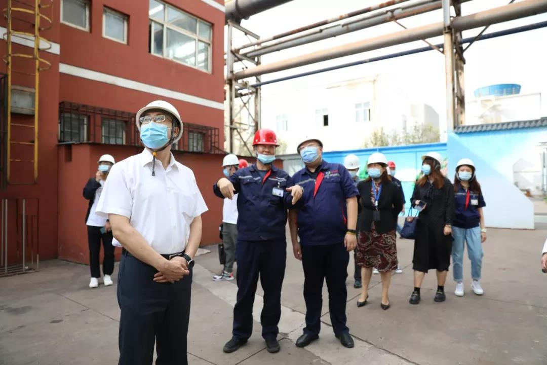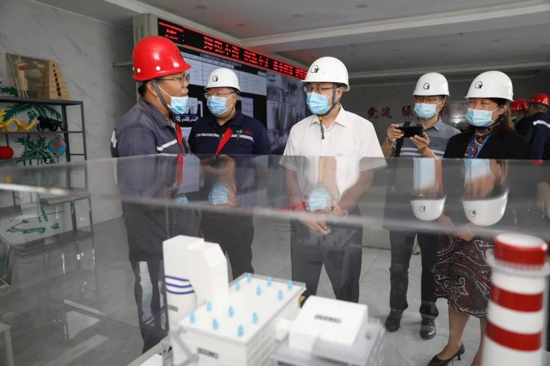 贺立军一行先后参观了炼钢厂转炉平台、炼铁厂3200m³高炉、二烧结脱硫脱硝中控室以及新天钢工业互联网运行中心。