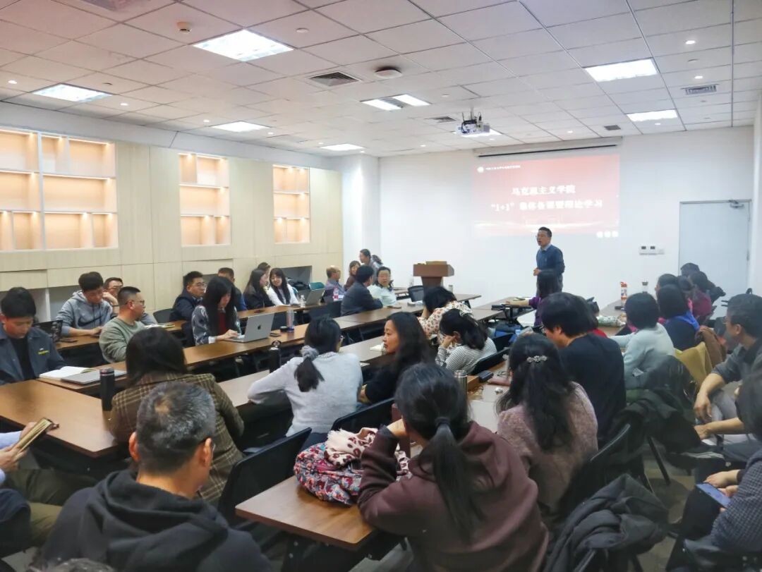 “马克思主义中国化”教研室主任李宇征围绕人工智能时代思政课教学的新变化及思考,立足于技术理性与价值理性的张力,剖析员工利用AI完成《毛泽东思想和中国特色社会主义理论体系概论》课程作业的问题,提出从微切口入手,结合员工生活经验和文化背景布置作业,开发适配的AI学习内容,让学习与员工生活深度联结。